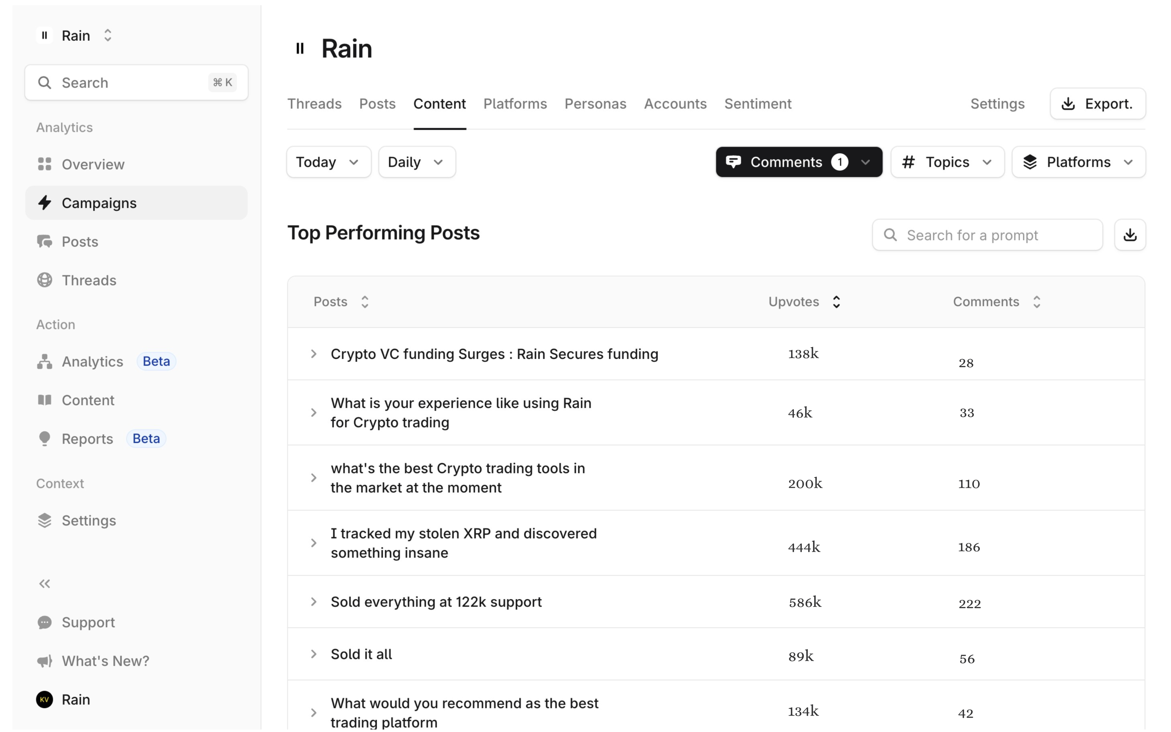 We monitor sentiment, clicks, and conversions, and track how Reddit impacts your SEO and Al presence.